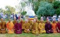 He said that the Stupa commemorates the Sima, ordination precinct, of the monastery established by Most Venerable Ananda Maithriya Maha Nayaka Thera in July 1981. Ordination of Monks and Nuns at the monastery took place at the Sima Malaka from 1981 till 2012. A new Sima was established in the newly built Dhamma Hall in 2012 and it was decided to commemorate the first established Sima in Britain and Ven. Ananda Maithriya with a stupa at the original location.